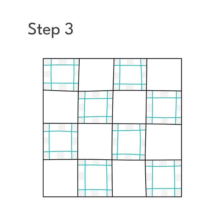 Step 4: Repeat steps 1-3 to fill in the rest of the square.