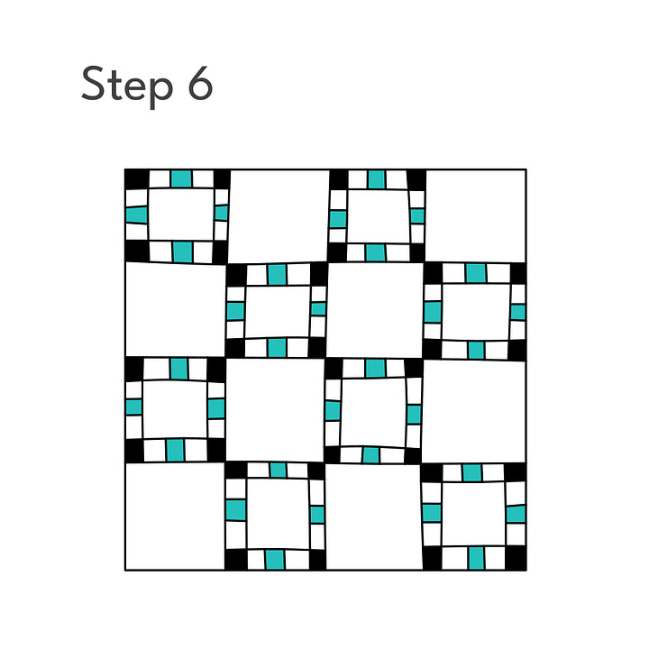 Step 6: Color in the small squares created in Step 5 as illustrated above.