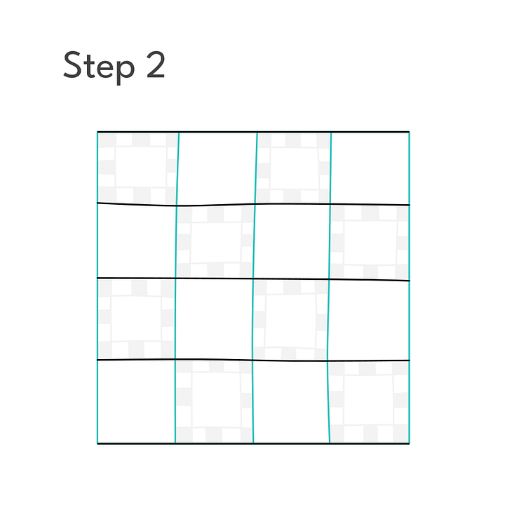 Step 2: Cross those lines with 5 vertical lines, creating a square grid.