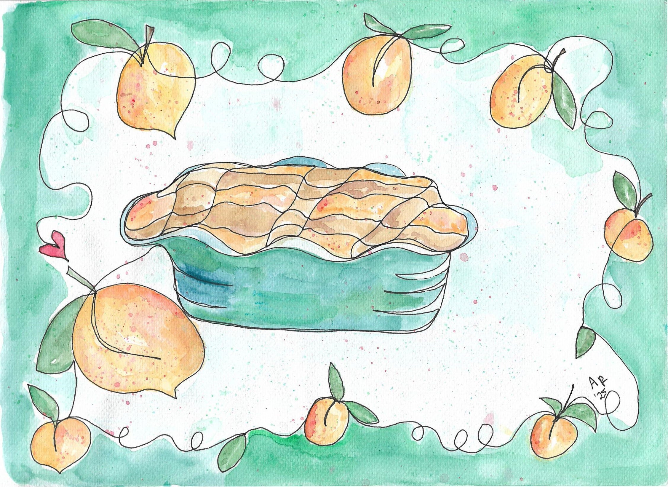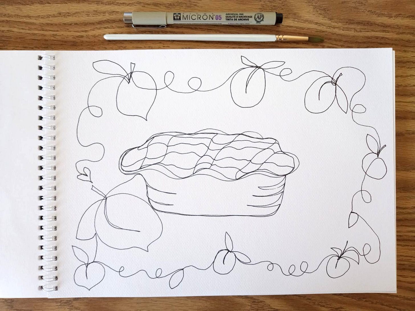 I was surprised how quickly I finished the line. There was some space on the right side of the pie where I would have liked to see a serving spoon, fork, or peach, but I didn’t plan it, and my pen simply didn’t go there. I decided to stop drawing once my line was complete, and overall, I was happy with it.