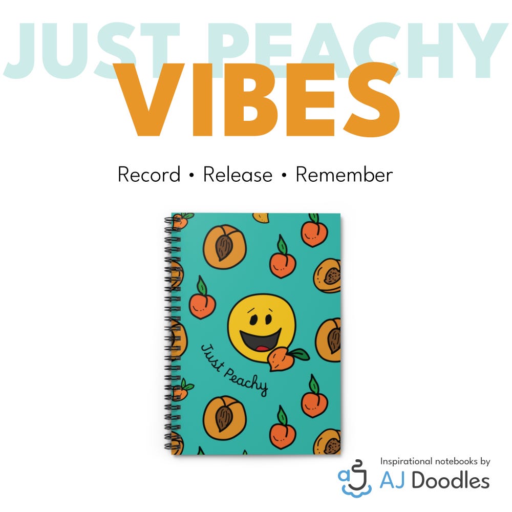 Check out our “Just Peachy” notebook. Created with hand-drawn doodle art.
