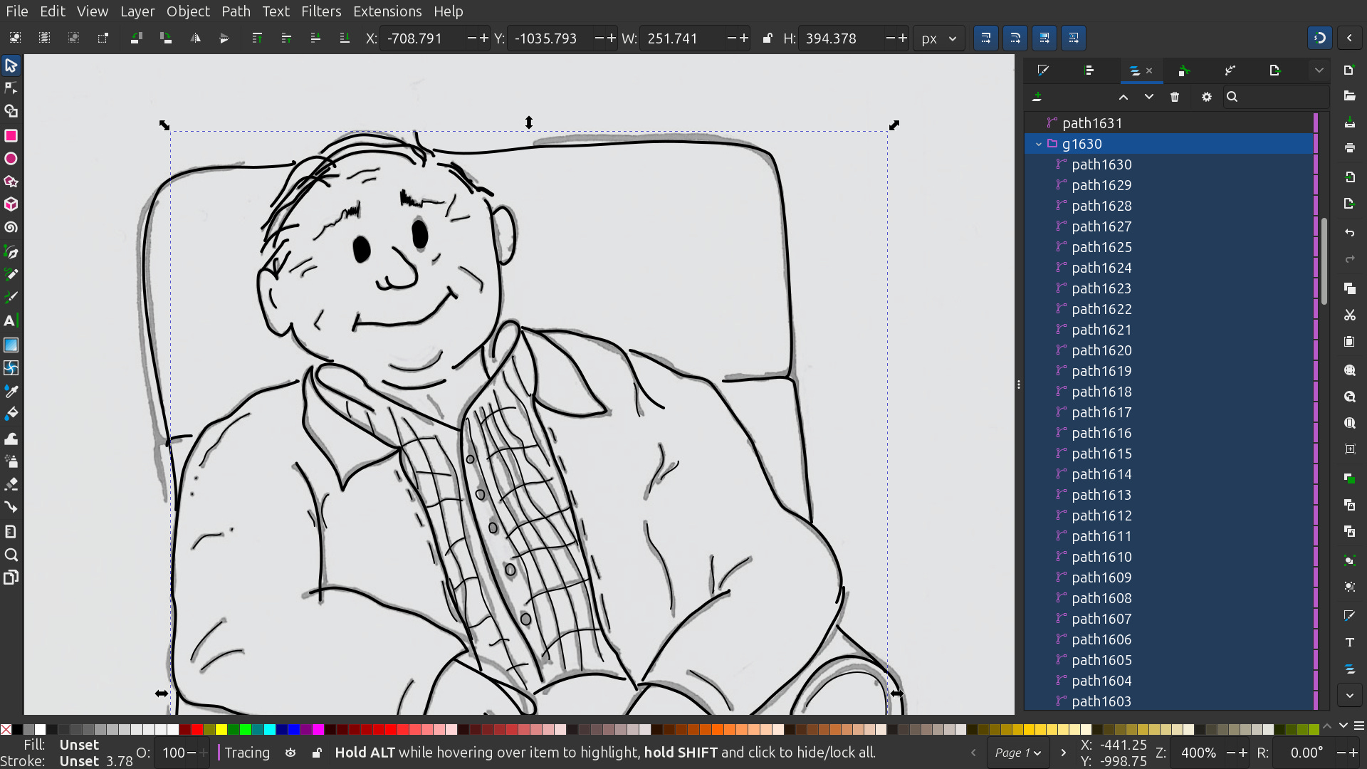 Tracing over the sketch lines is a tedious task. I connect my basic drawing tablet to the computer and draw the new lines.
