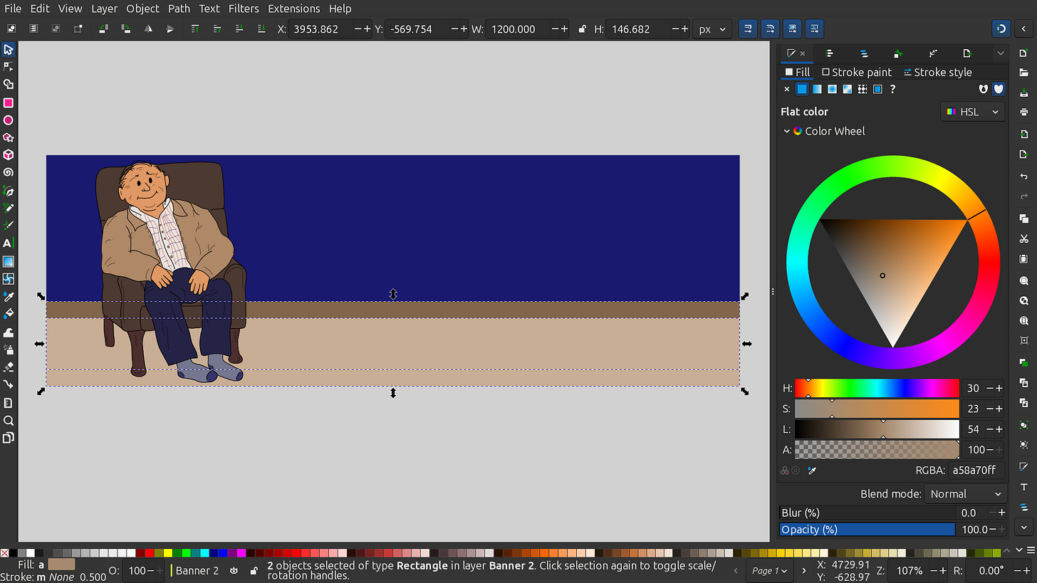 To fix the problem of the floating chair, I added a couple of rectangles to act as a floor and baseboard.