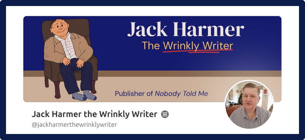 This week, we will take you behind the scenes and into the design process for a profile banner made for Substack writer: Jack Harmer the Wrinkly Writer.