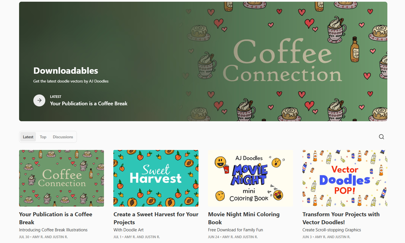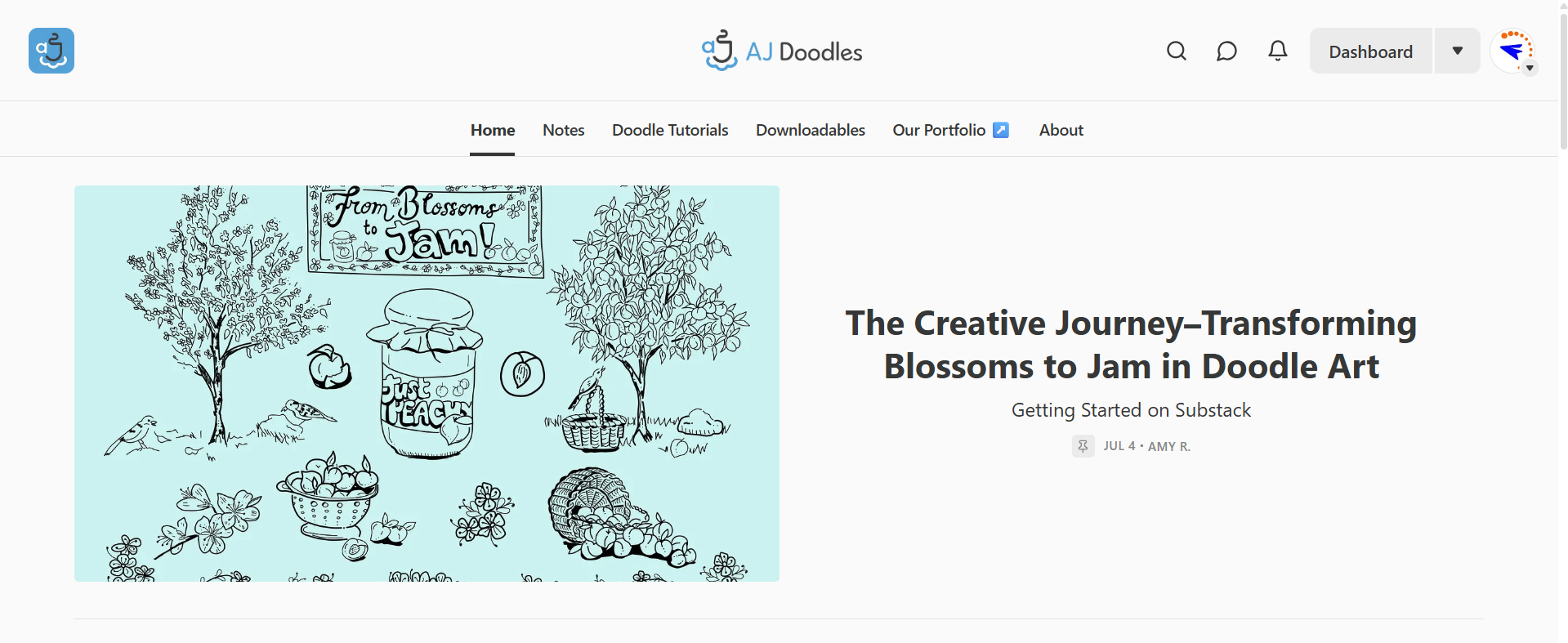 These banners work great because they clearly state what we provide here on Substack. The text is supported with doodle art, making the banner look fun, unique, and personal.